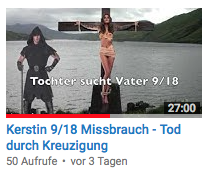 Teil 9 - Kreuzigung - Kerstin war bei ihrem Vater, der sich sehr freute. Bei ihrem Ex-Freund bemerkte sie keine Gefühle mehr. Am Anfang der Session taucht ein Bild auf, wie sie als Puppe gekreuzigt wurde, ein Henker steht daneben mit einer Axt. Die Missbrauchssituationen haben ihre Gefühle abgetötet - zeigt ihre PSYCHE damit sehr deutlich auf. Aliesa, ihre starke Helferin, hat das Weiche und Sensible in ihr umbringen lassen, damit sie überlebt. Kerstin stellt fest, als Kind suchte sie Nähe bei ihrem Stiefvater, stattdessen benutzte er sie. Jetzt kann nur noch der echte Papa helfen und soll sich um sein Kind kümmern …